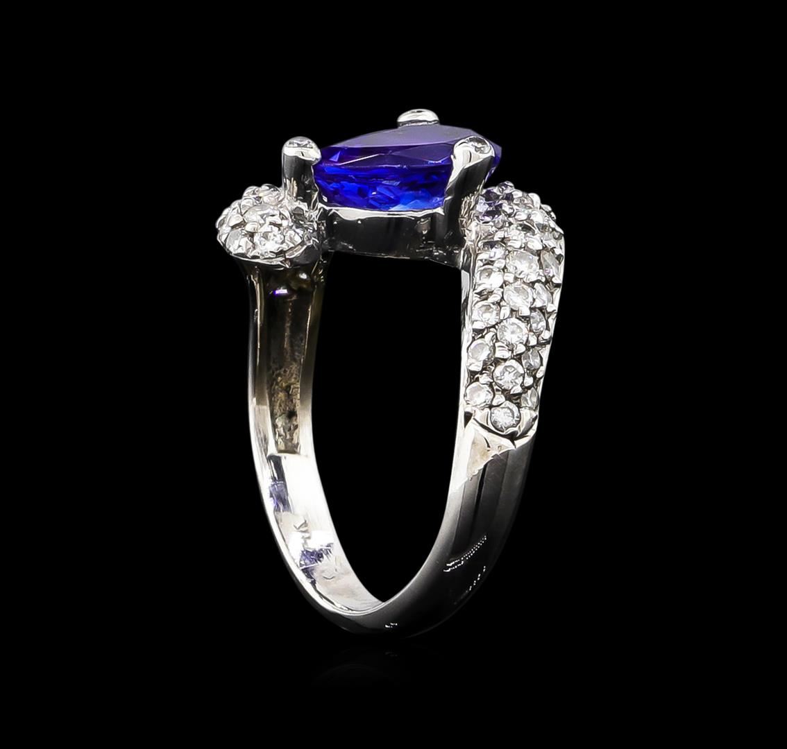 One ring featuring: 14KT white gold weighing 3.63 grams containing one tanzanite with a total weight of 1.75ct and side diamonds with a total weight of 1.00ct.