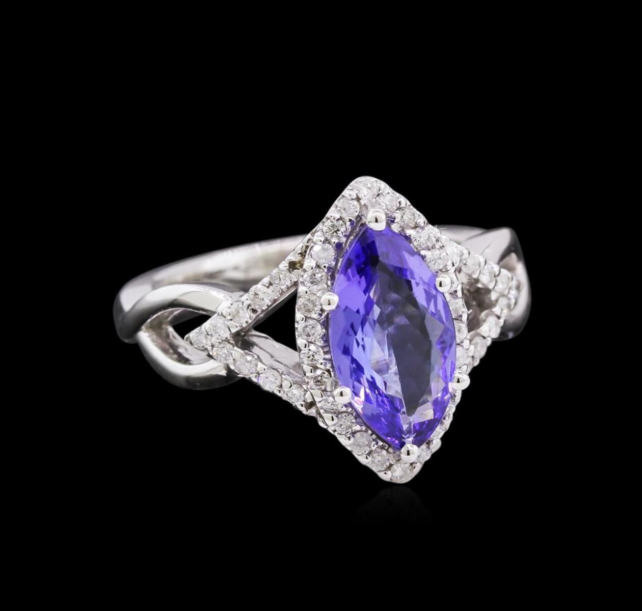 One ring featuring: 14KT white gold weighing 5.45 grams containing one tanzanite with a total weight of 1.75ct and diamonds with a total weight of 0.30 ct.