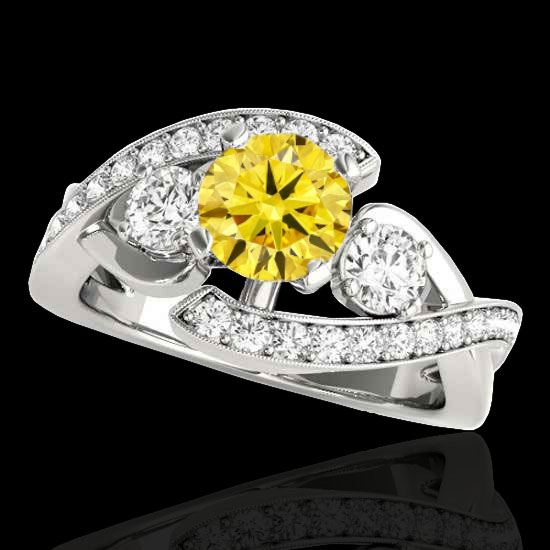 1.76 CTW Certified Si Intense Yellow Diamond Bypass Solitaire Ring 10K White Gold ---- Luxury Designer Brand Ring Appraised Retail Price at $13,800 ---- SKU Number US35043 10k White gold Ring Size is 7, Ring measuring approx. Uniform, weighing in total approx. 5.5 grams. Made in the USA and is stamped 10k, Main stone 1.00 carat total weight containing 1 pieces of Intense Fancy Yellow color with SI quality Round shape cut Diamond , Stone #2 0.76 carat total weight containing 46 pieces of H-I color with VS/SI quality Round shape cut