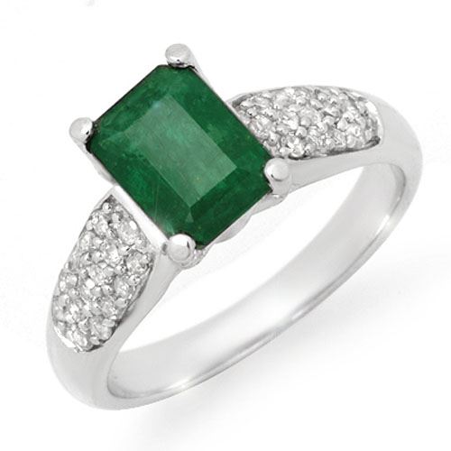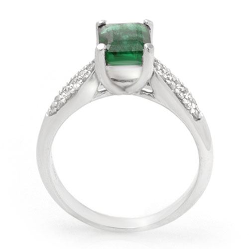 1.76 CTW Emerald & Diamond Ring 10K White Gold ---- Luxury Designer Brand Ring Appraised Retail Price at $2,350 ---- SKU Number US14548 10k White gold Ring Size is 6.5, Ring measuring approx. 5/16" x 11/16" , weighing in total approx. 4.1 grams. Made in the USA and is stamped 10k, Main stone 1.5 carat total weight containing 1 pieces of Intense Green color with AAA quality Emerald shape cut Emerald , Stone #2 0.26 carat total weight containing 30 pieces of H-I color with VS/SI quality Round shape cut