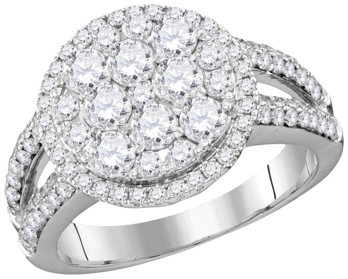 REF-239W9H ---- 1.76 CTW Natural Diamond Cluster Bridal Engagement Ring 14K White Gold - SKU: GD114099