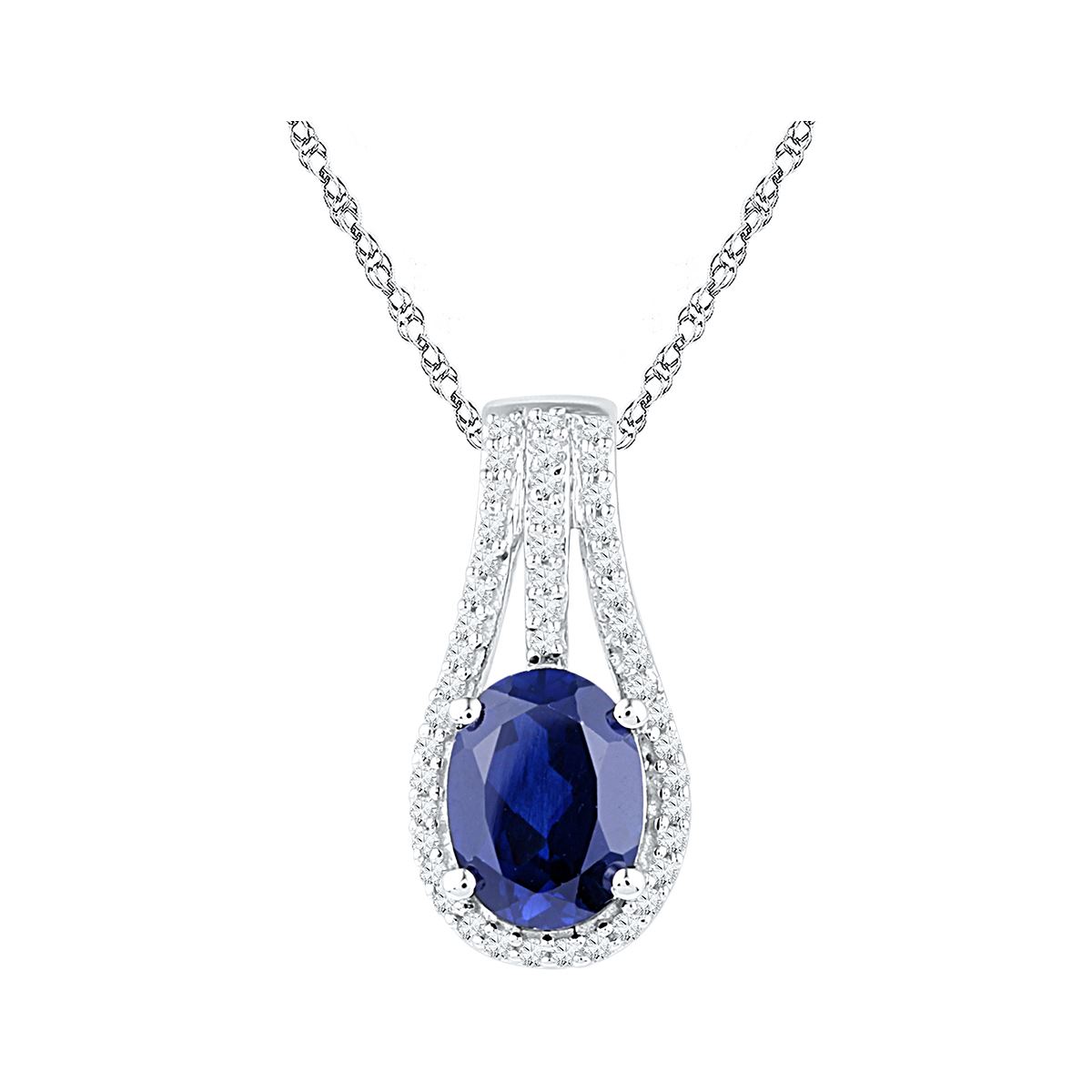 REF-14W9K- SKU: GD107032 ---- 1.76 CTW Oval Created Blue Sapphire Solitaire Diamond Pendant 10KT White Gold