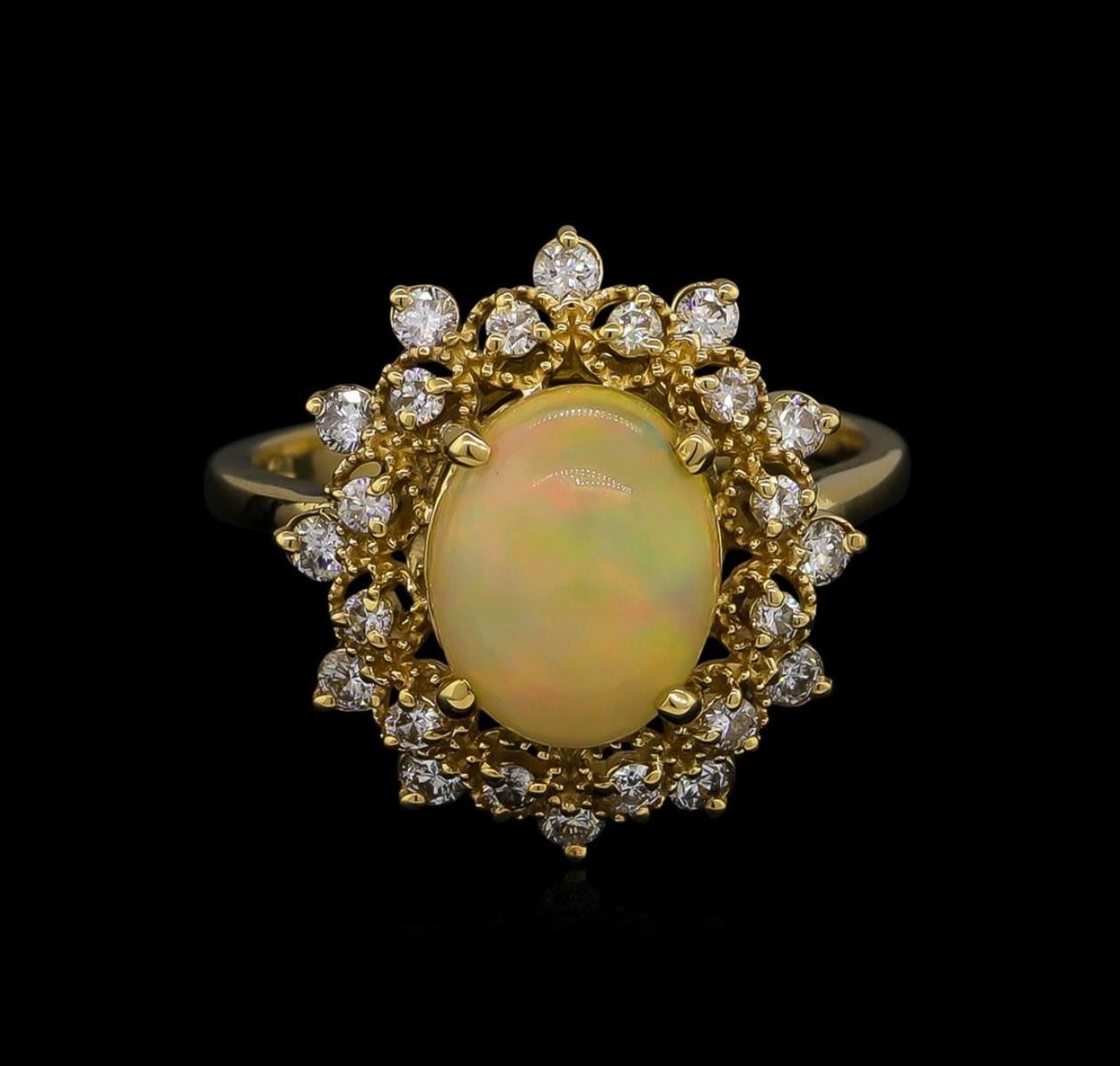 One ring featuring: 14KT yellow gold weighing 3.71 grams containing one opal with a total weight of 1.76ct and side diamonds with a total weight of 0.48ct.
