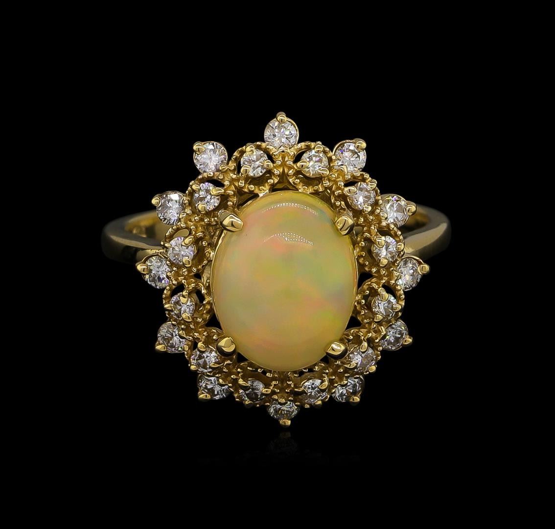 One ring featuring: 14KT yellow gold weighing 3.71 grams containing one opal with a total weight of 1.76ct and side diamonds with a total weight of 0.48ct.