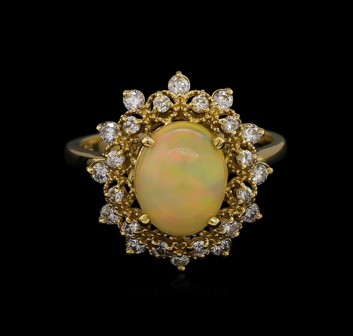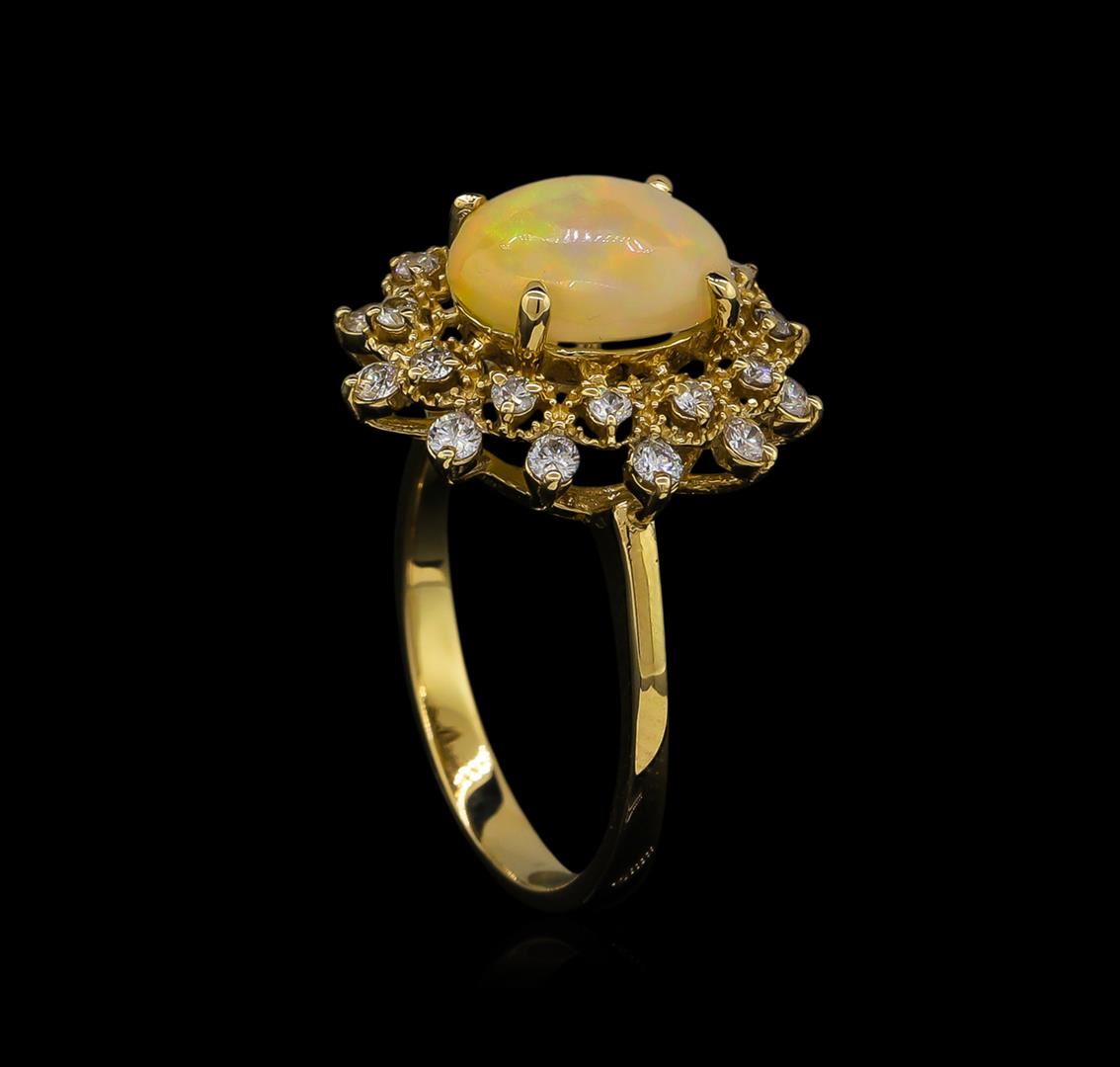 One ring featuring: 14KT yellow gold weighing 3.71 grams containing one opal with a total weight of 1.76ct and side diamonds with a total weight of 0.48ct.