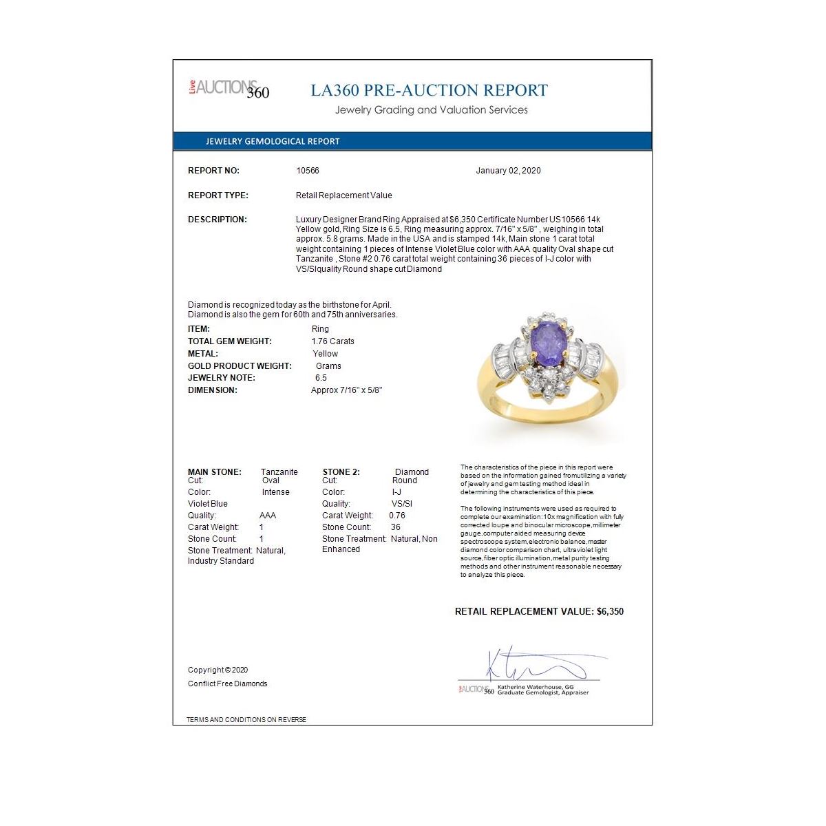 1.76 ctw Tanzanite & Diamond Ring 14K Yellow Gold