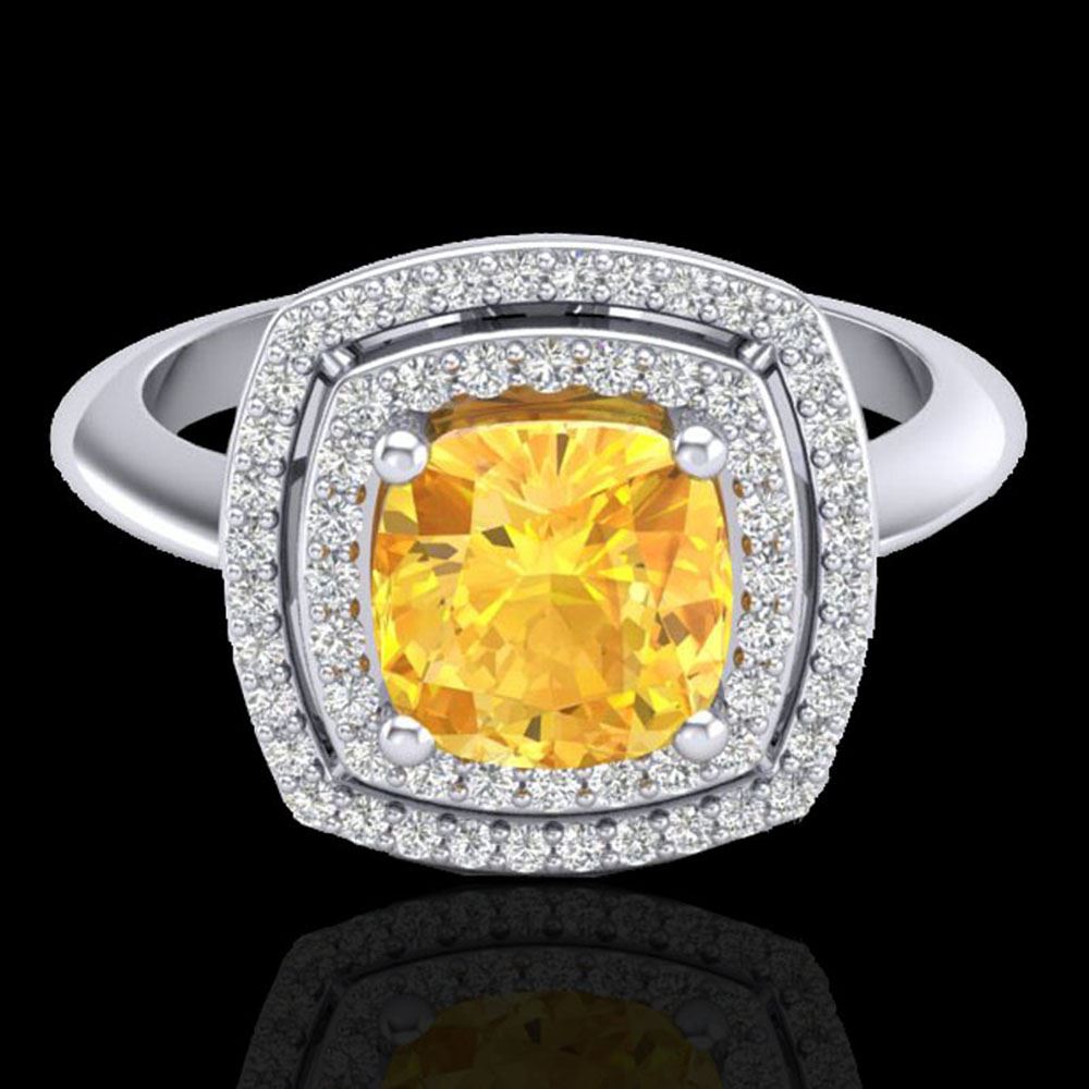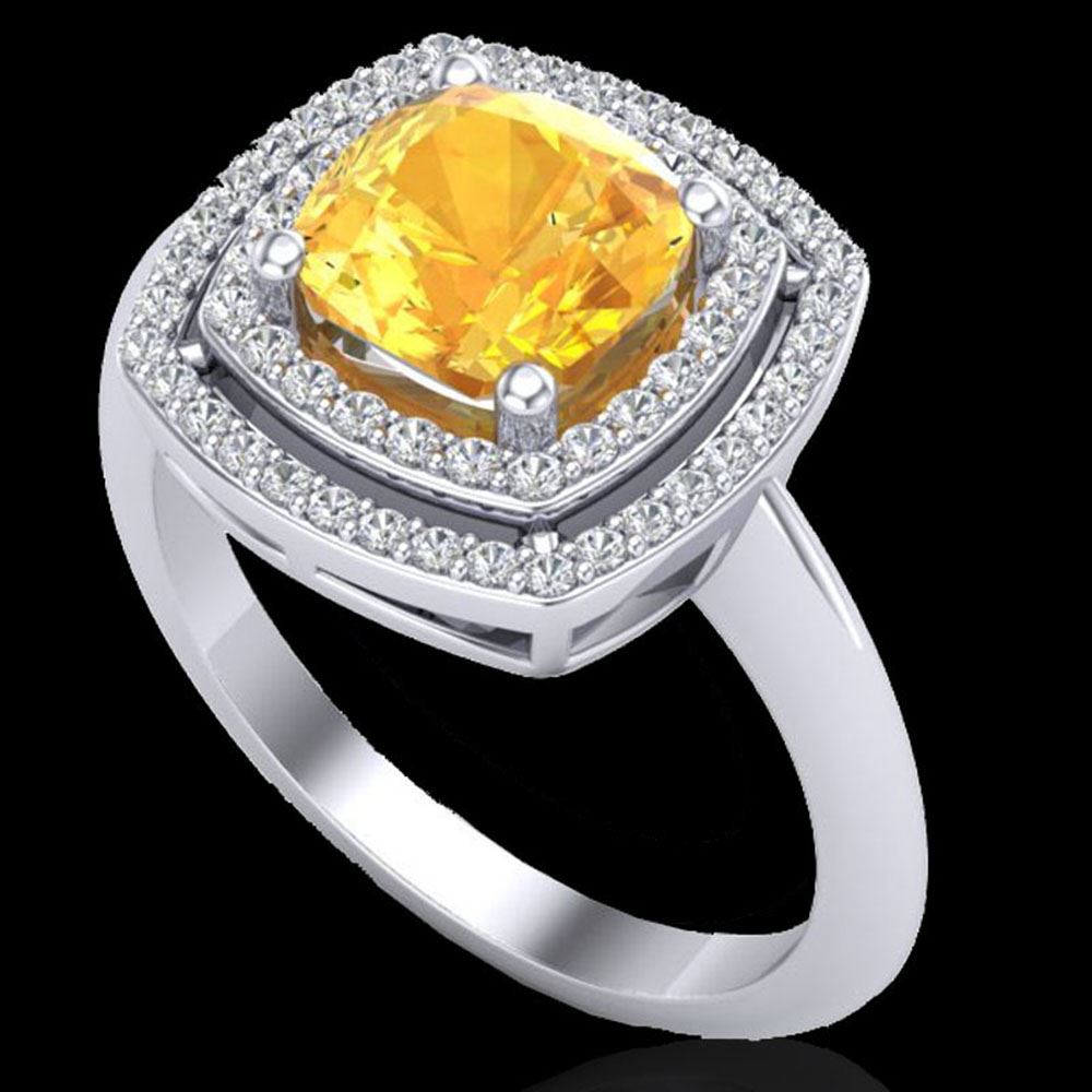 REF-49F3M - SKU: 20757 ---- 1.77 ctw Citrine & Micro VS/SI Diamond Pave Ring 18k White Gold