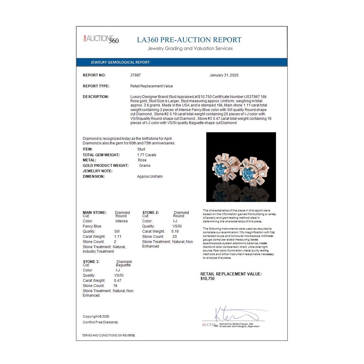 REF-177M3G - SKU: 37867 ---- 1.77 ctw Fancy Intense Blue Diamond Art Deco Earrings 18k Rose Gold