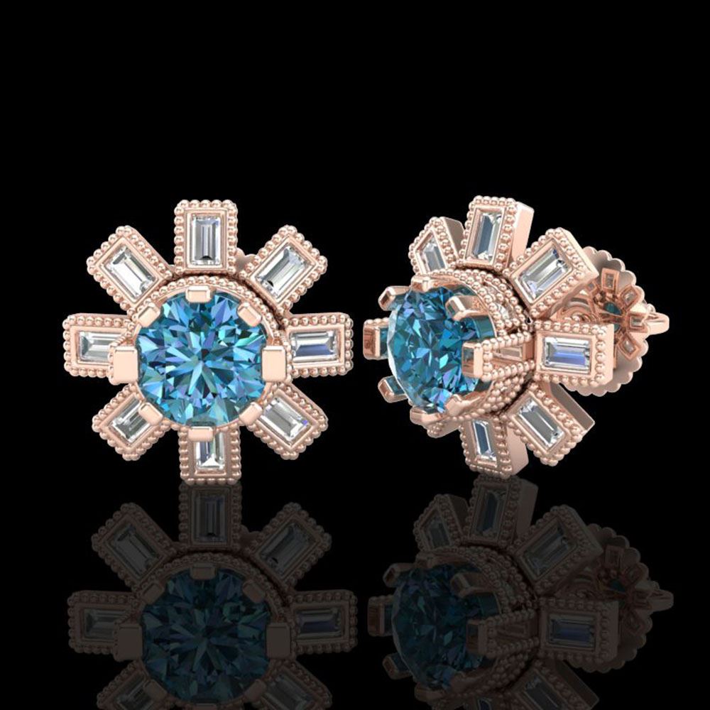 REF-177M3G - SKU: 37867 ---- 1.77 ctw Fancy Intense Blue Diamond Art Deco Earrings 18k Rose Gold