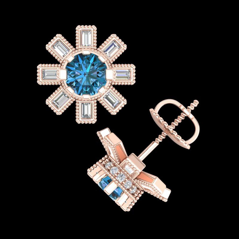 REF-177M3G - SKU: 37867 ---- 1.77 ctw Fancy Intense Blue Diamond Art Deco Earrings 18k Rose Gold