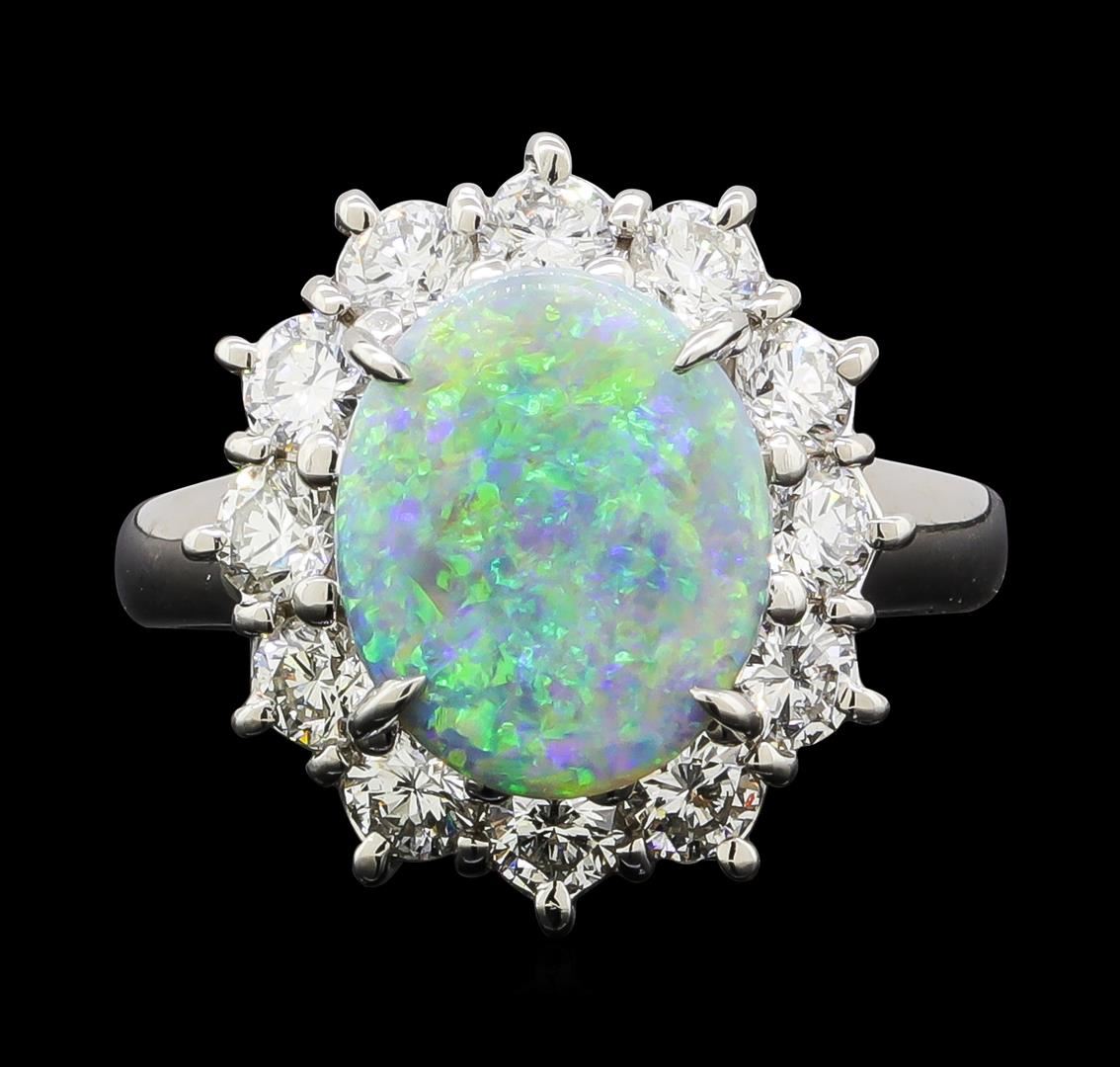 One ring featuring: Platinum containing Opal with a total weight of 1.77ct and Diamonds with a total weight of 1.16ct. Total Weight of Ring: 8.2 grams.