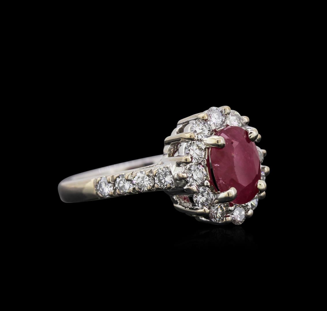 One ring featuring: 14KT white gold weighing 5.78 grams containing one prong set oval shape ruby center stone with a total weight of 1.78ct and 20 prong set round diamonds with a total weight of 0.84ct.