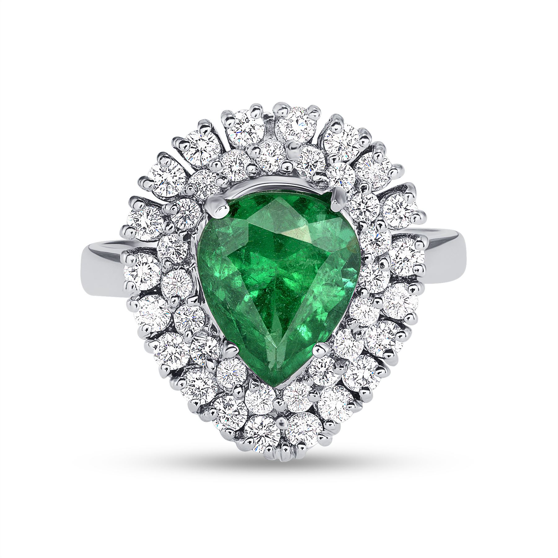 NATURAL Emerald 1.78ct / Diamond 0.82ct E-F Color VS Quality very well cut / 18K White Gold 6.3gm #GVR1682