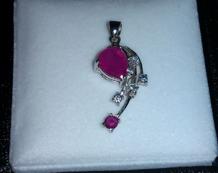 1.790g Pendant of Ruby and CZ Sterling 925 Silver