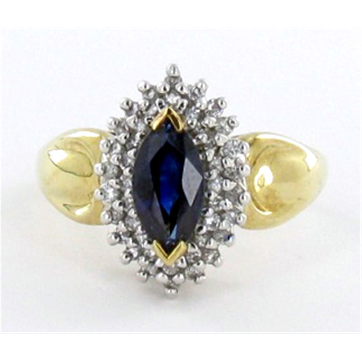Wonderful NEW 10k gold 1.5ct sapphire marquise surrounded by 40+ white diamonds totalling .5ct+