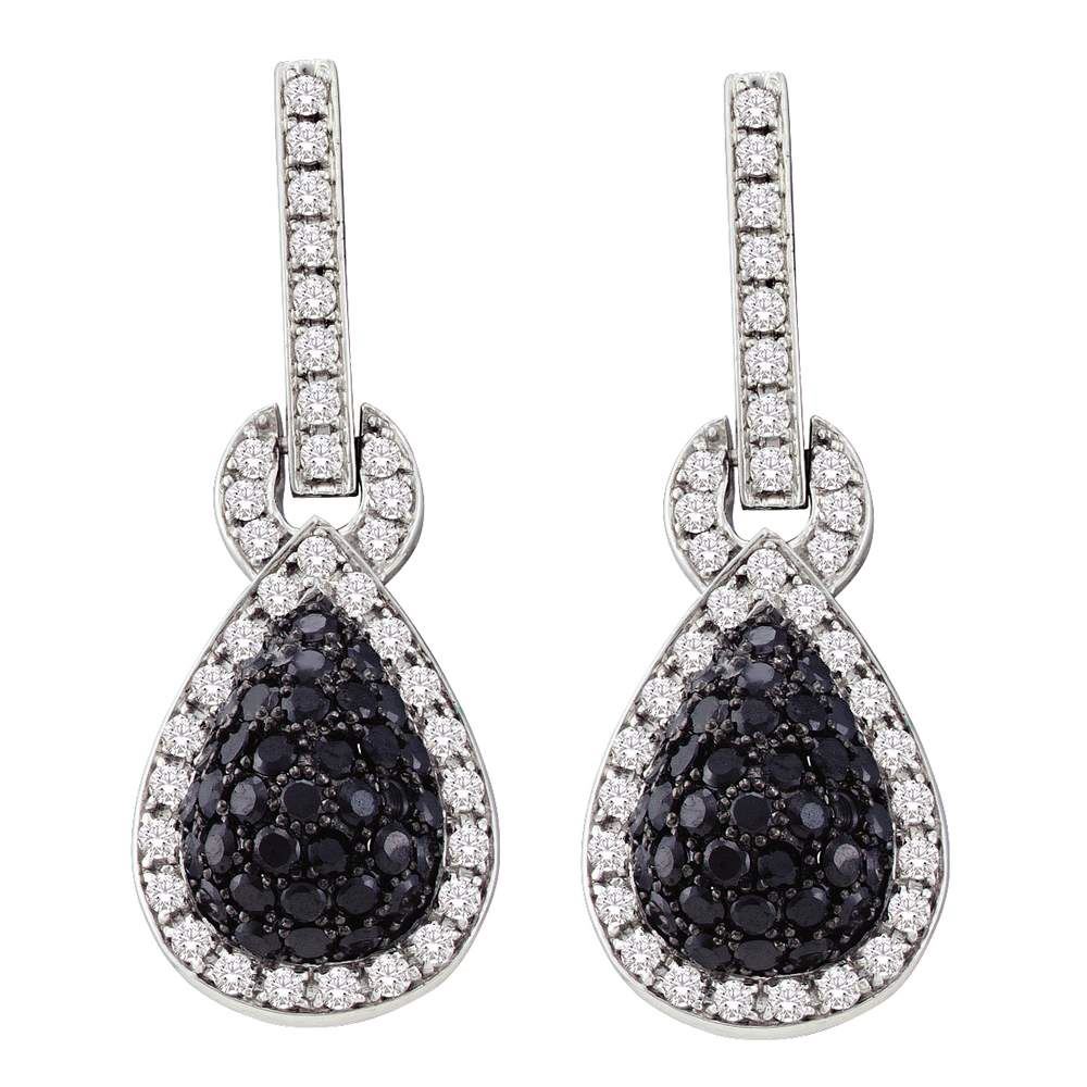 REF-97X4Y- SKU: GD57334 ---- 1.8 CTW Black Color Diamond Teardrop Dangle Earrings 10KT White Gold