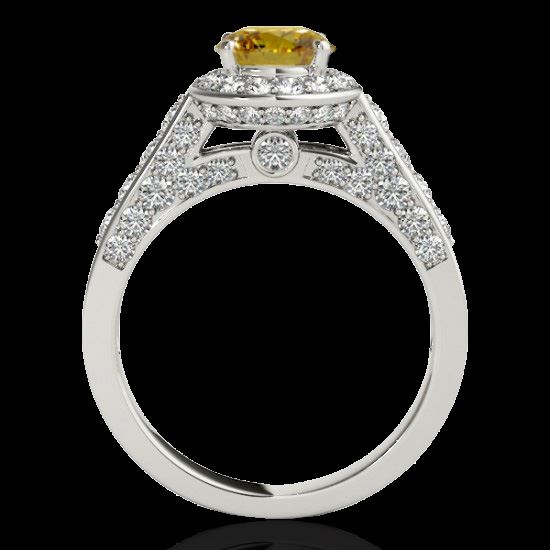 REF-178X2T -34049 ---- 1.8 CTW Certified Si/I Fancy Intense Yellow Diamond Solitaire Halo Ring 10K White Gold ---- Luxury Designer Brand Ring Appraised at $11,750 Certificate Number US34049 10k White gold, Ring Size is 7, Ring measuring approx. Uniform, weighing in total approx. 5.7 grams. Made in the USA and is stamped 10k, Main stone 1 carat total weight containing 1 pieces of Intense Fancy Yellow color with SI quality Round shape cut Diamond , Stone #2 0.8 carat total weight containing 66 pieces of H-I color with VS/SI quality Round shape cut Diamond
