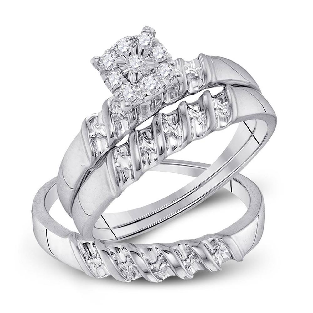 REF-34R3X - 1/8 CTW His Hers Round Diamond Cluster Matching Wedding Set 10kt White Gold - REF-34R3X