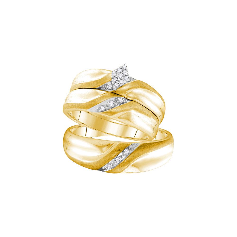 REF-44V2Y - 1/8 CTW His Hers Round Diamond Cluster Matching Wedding Set 10kt Yellow Gold - REF-44V2Y
