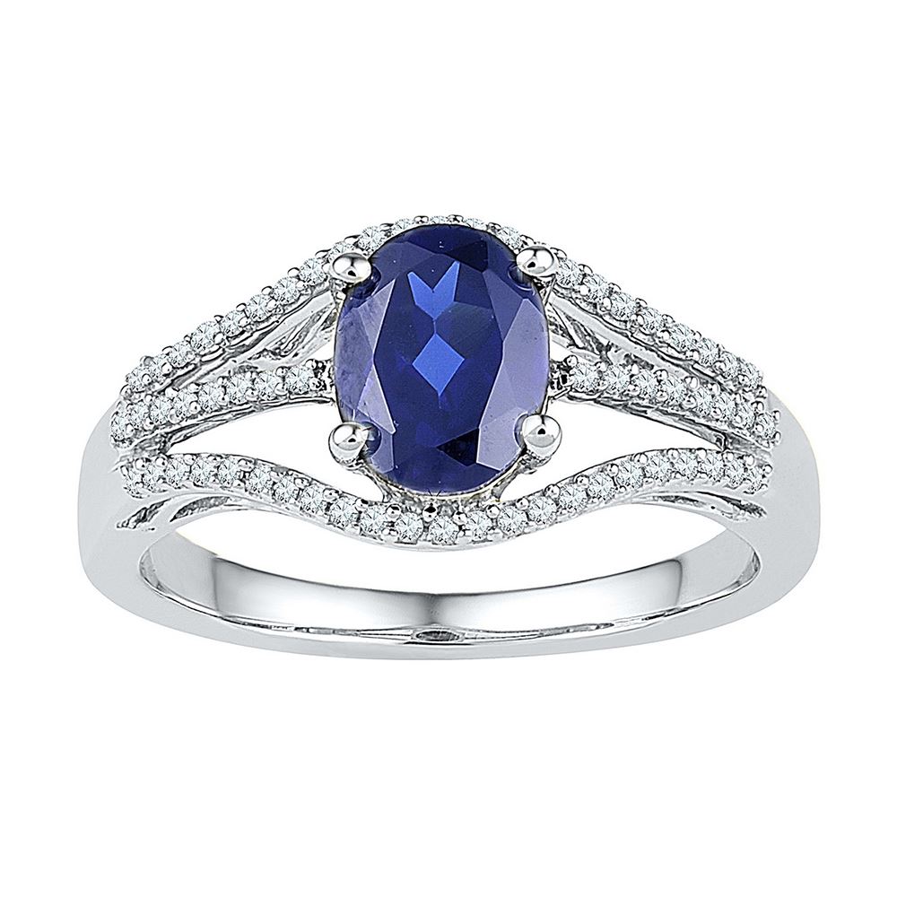 REF-25M4H- SKU: GD107031 ---- 1.8 CTW Oval Created Blue Sapphire Solitaire Diamond Ring 10KT White Gold