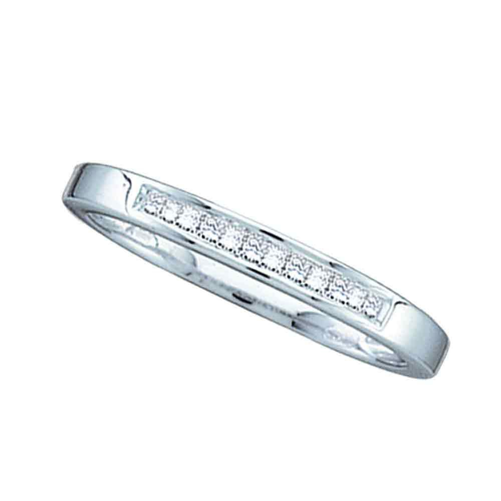 14kt White Gold Womens Princess Diamond Slender Single Row Wedding Band 1/8 Cttw