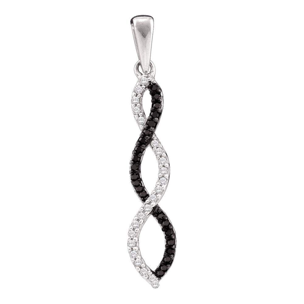 10kt White Gold Womens Round Black Color Enhanced Diamond Woven Infinity Pendant 1/8 Cttw
