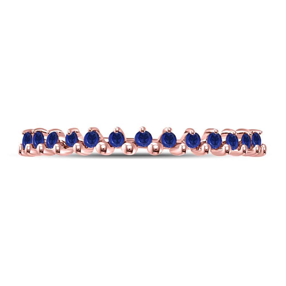 10kt Rose Gold Womens Round Blue Sapphire Single Row Stackable Band Ring 1/8 Cttw