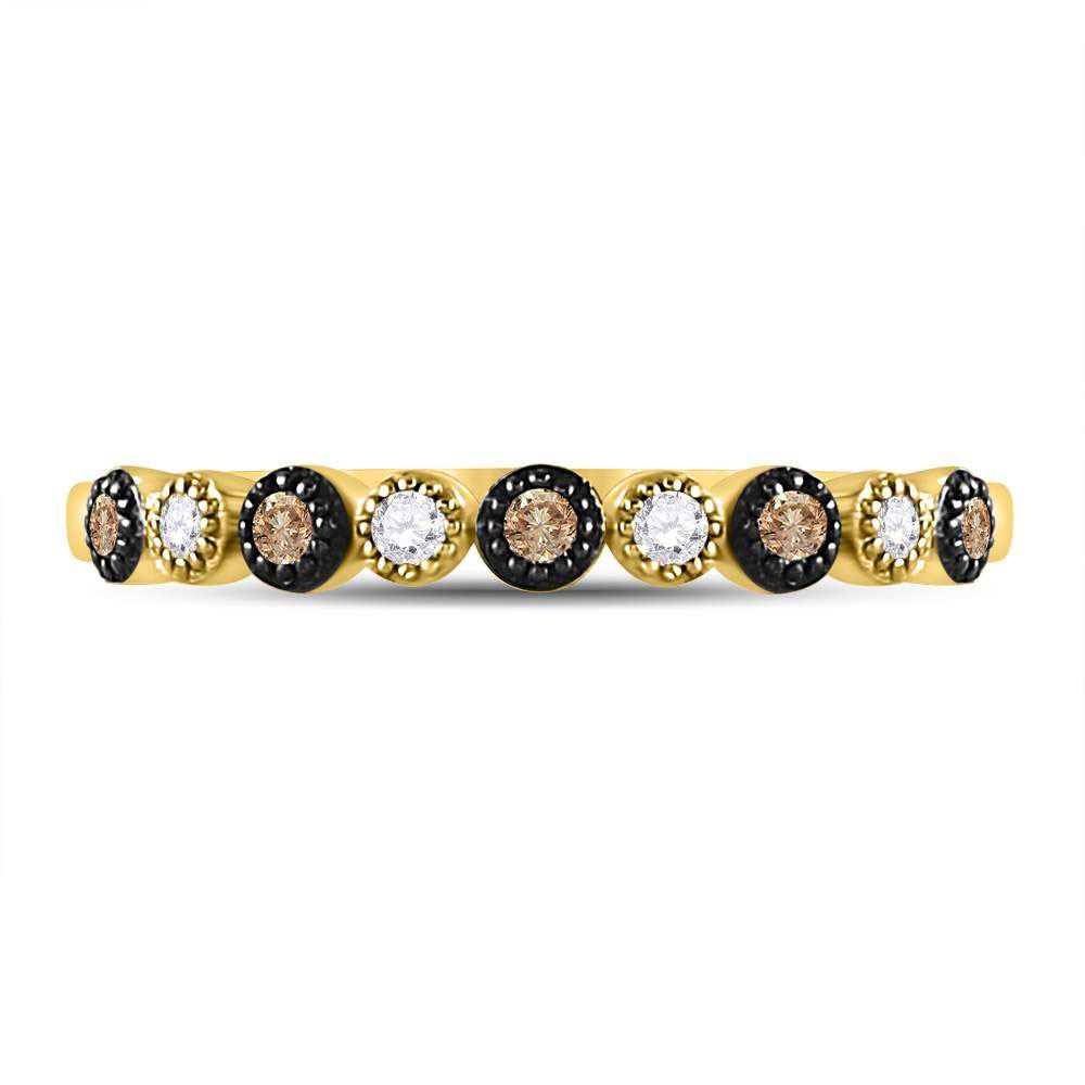 10kt Yellow Gold Womens Round Brown Diamond Milgrain Dot Band Ring 1/8 Cttw