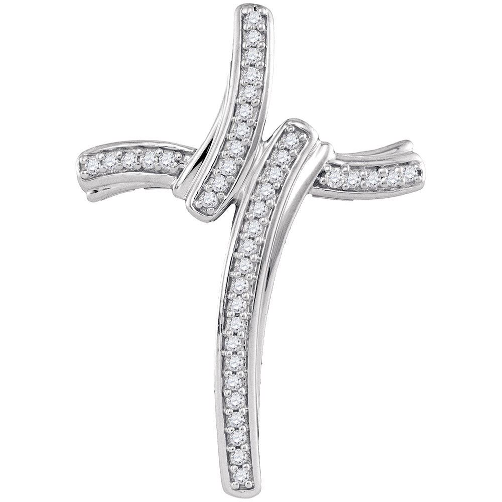 10kt White Gold Womens Round Diamond Cross Pendant 1/8 Cttw