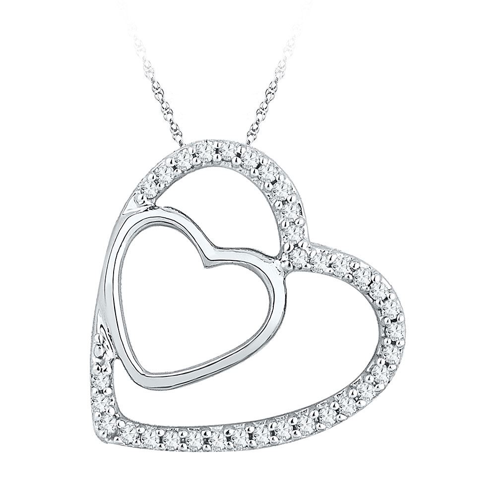 10kt White Gold Womens Round Diamond Double Heart Pendant 1/8 Cttw