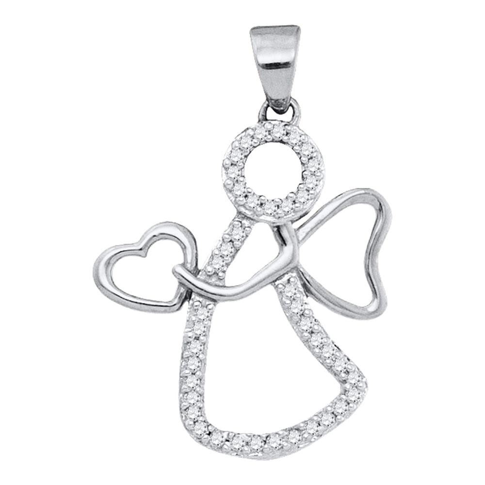 10kt White Gold Womens Round Diamond Guardian Angel Heart Pendant 1/8 Cttw