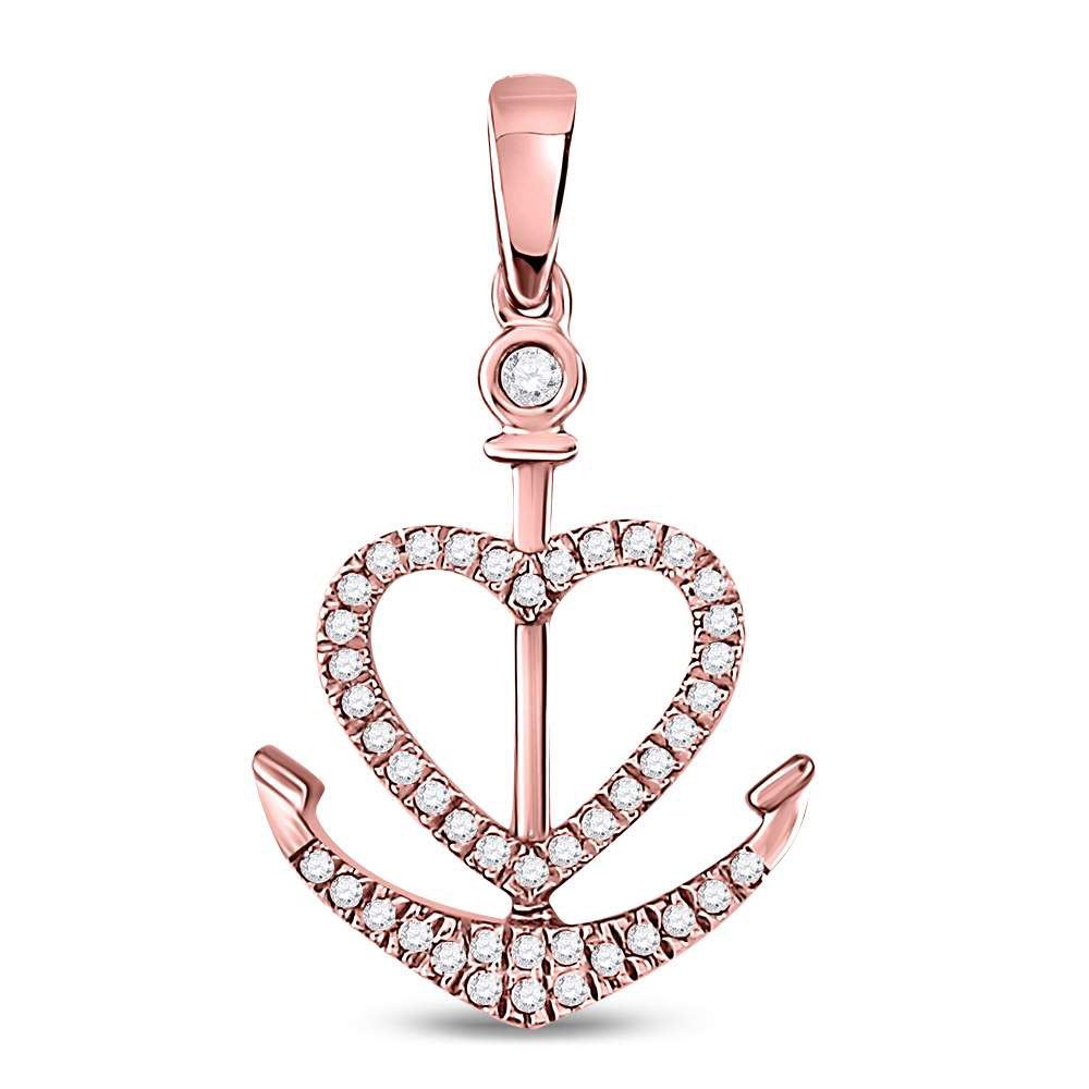 14kt Rose Gold Womens Round Diamond Heart Anchor Pendant 1/8 Cttw