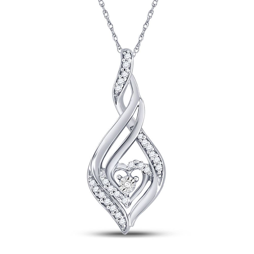 10kt White Gold Womens Round Diamond Heart Spade Frame Pendant 1/8 Cttw
