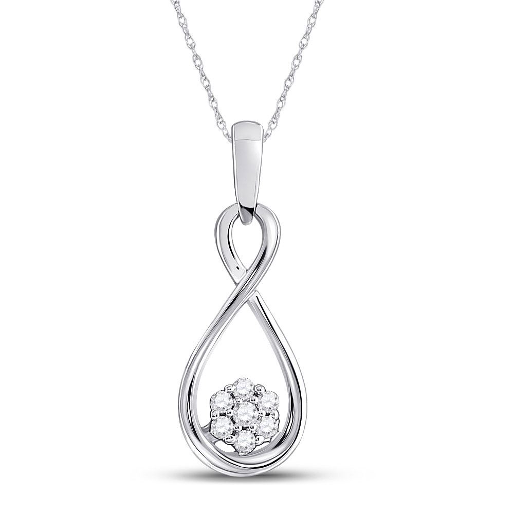 10kt White Gold Womens Round Diamond Infinity Cluster Pendant 1/8 Cttw