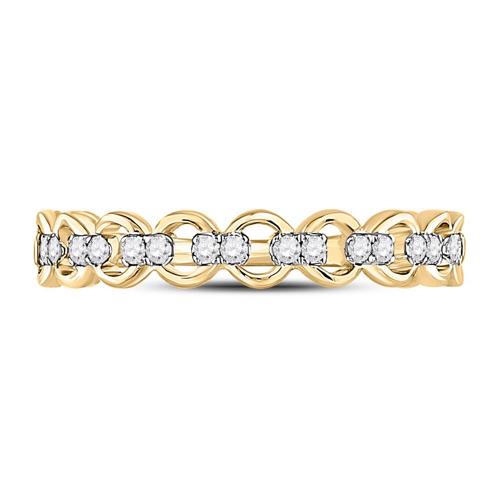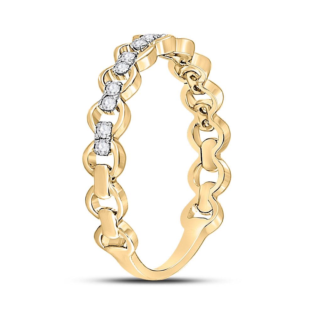 10kt Yellow Gold Womens Round Diamond Link Stackable Band Ring 1/8 Cttw