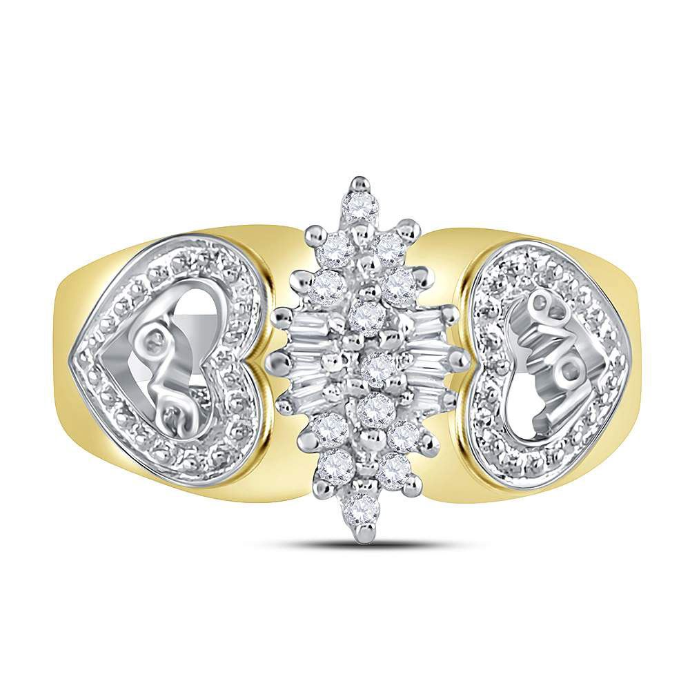 10kt Two-tone Yellow Gold Womens Round Diamond Oval Cluster Love Heart Ring 1/8 Cttw