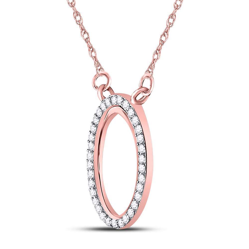 14kt Rose Gold Womens Round Diamond Oval Pendant Necklace 1/8 Cttw