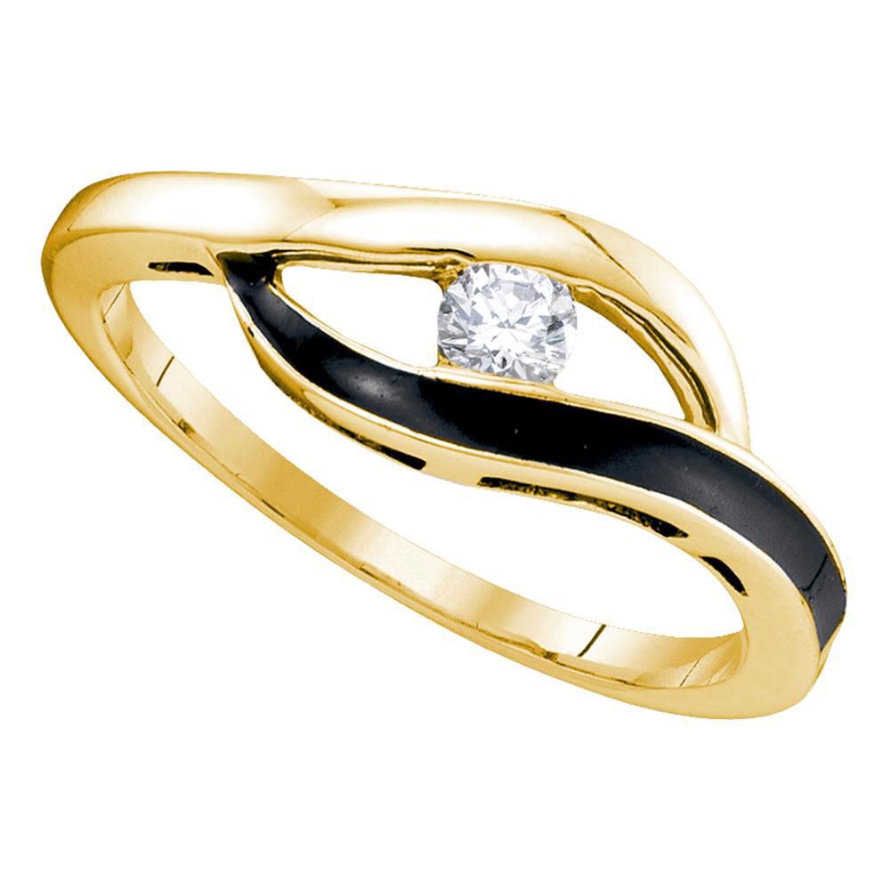 10kt Yellow Gold Womens Round Diamond Solitaire Black-tone Promise Bridal Ring 1/8 Cttw