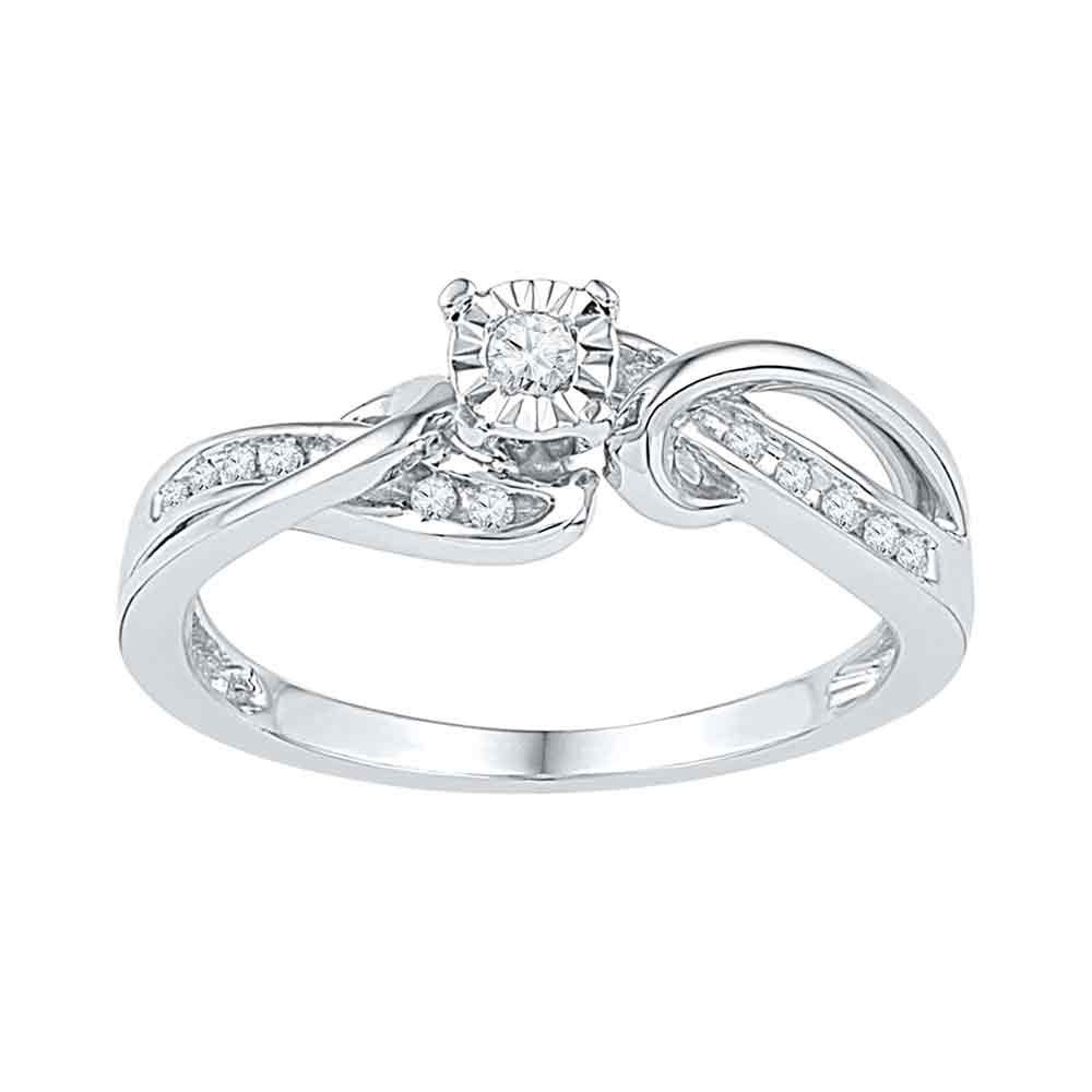 REF-18Y3X ---- 1/8 CTW Round Diamond Solitaire Bridal Wedding Engagement Ring 10kt White Gold