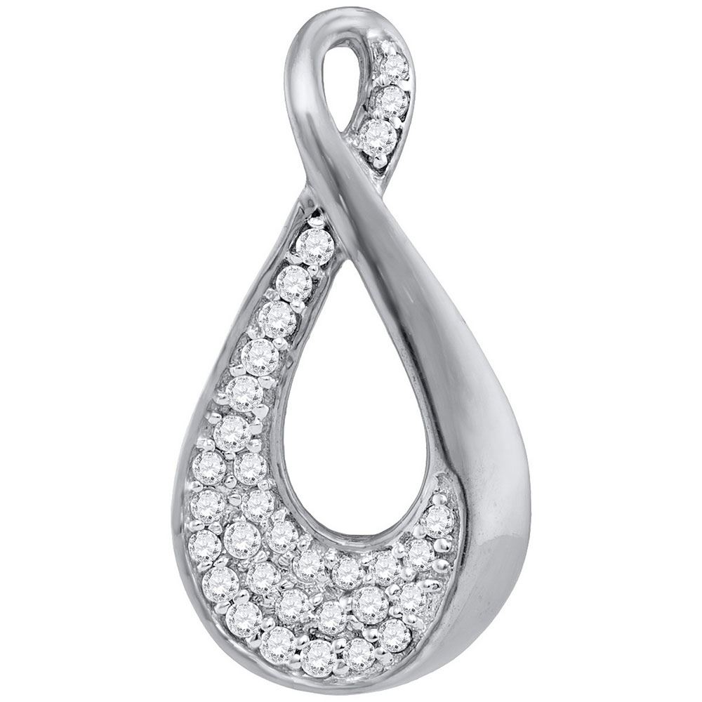 10kt White Gold Womens Round Diamond Teardrop Cluster Pendant 1/8 Cttw