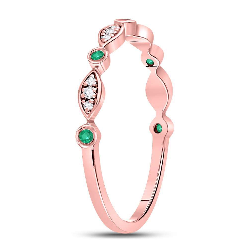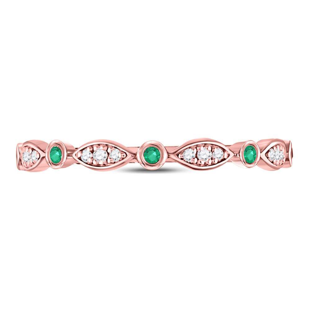 10kt Rose Gold Womens Round Emerald Diamond Marquise Dot Stackable Band Ring 1/8 Cttw