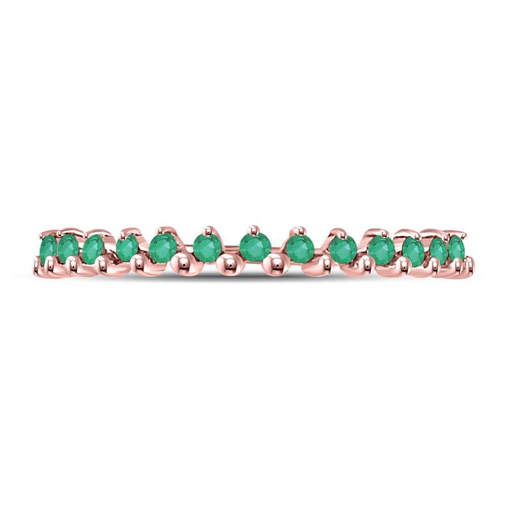 10kt Rose Gold Womens Round Emerald Stackable Band Ring 1/8 Cttw