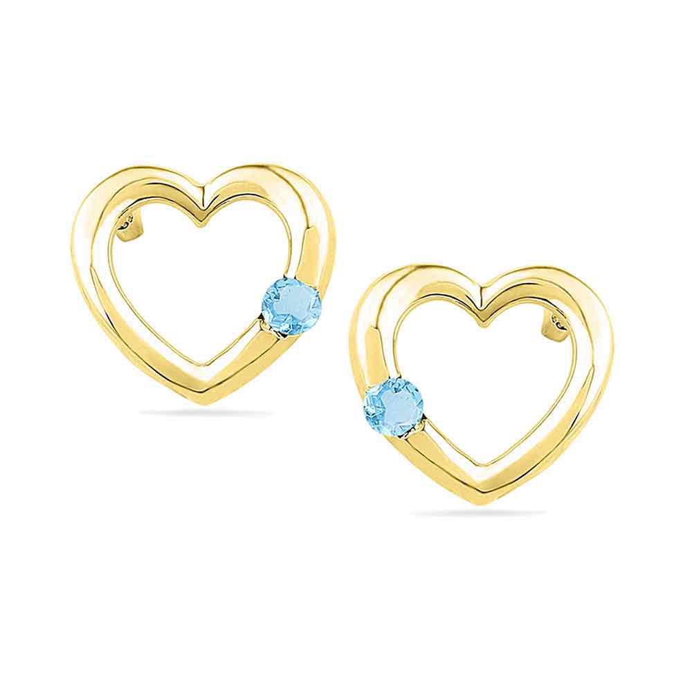 REF-13N2Y ---- 1/8 CTW Round Lab-Created Blue Topaz Heart Earrings 10kt Yellow Gold