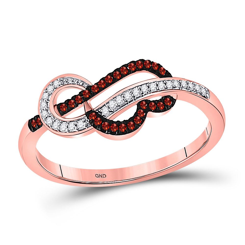 10kt Rose Gold Womens Round Red Color Enhanced Diamond Heart Strand Ring 1/8 Cttw