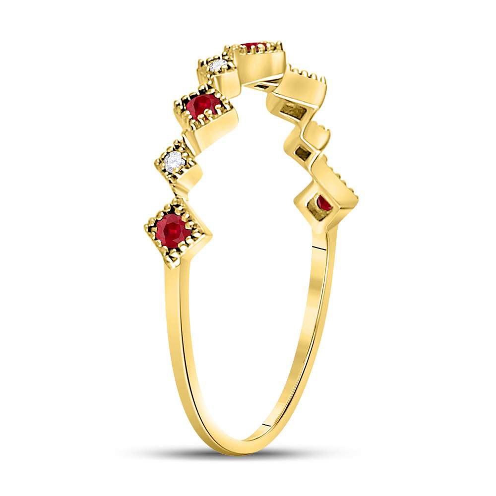 10kt Yellow Gold Womens Round Ruby Diamond Milgrain Square Stackable Band Ring 1/8 Cttw