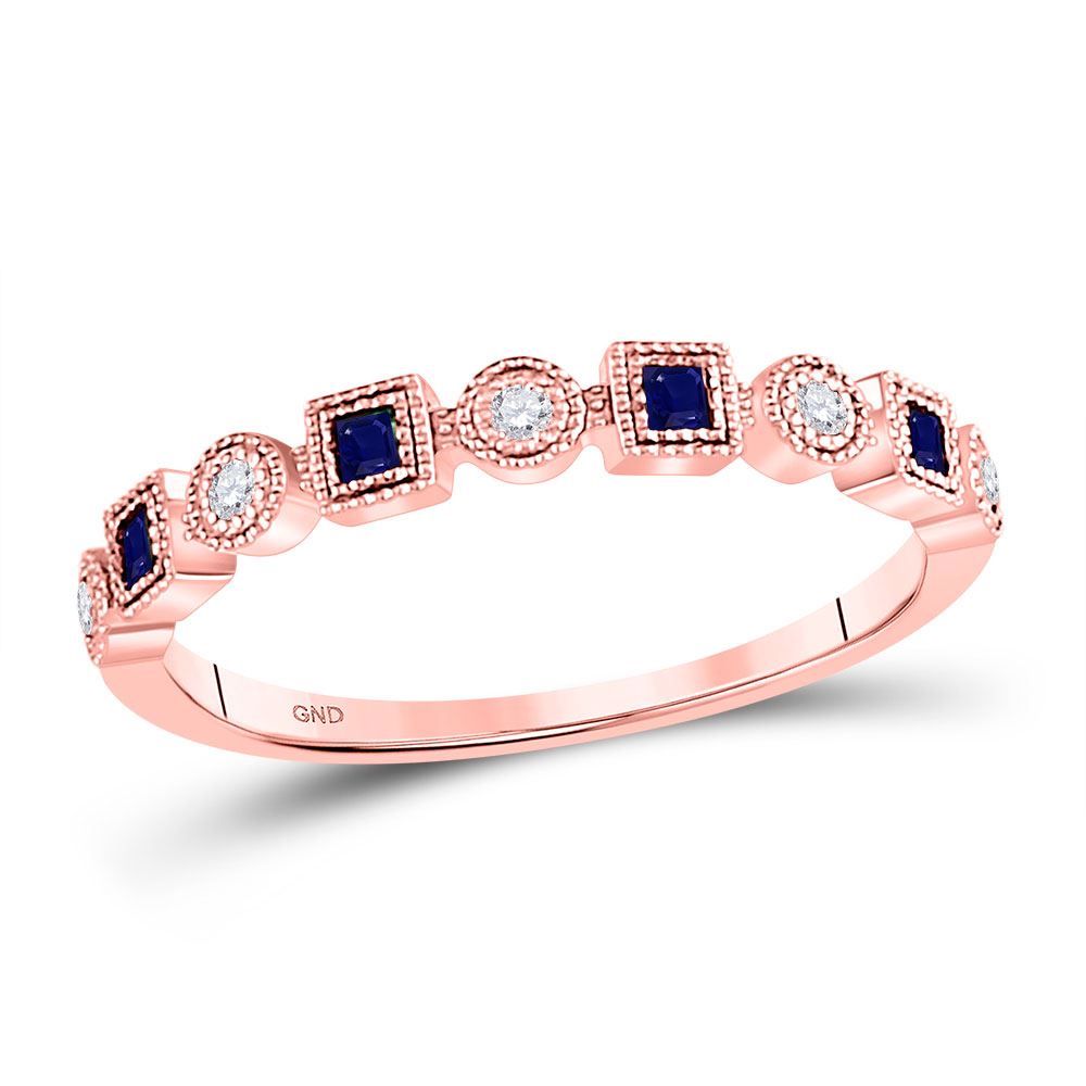 REF-19R2X - 1/8 CTW Womens Princess Blue Sapphire Diamond Stackable Band Ring 10kt Rose Gold - REF-19R2X
