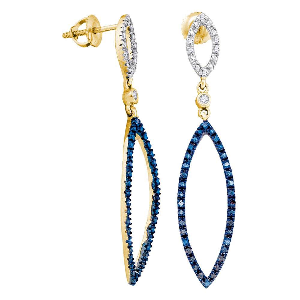 REF-17H6R - 1/8 CTW Womens Round Blue Color Enhanced Diamond Dangle Earrings 10kt Yellow Gold - REF-17H6R