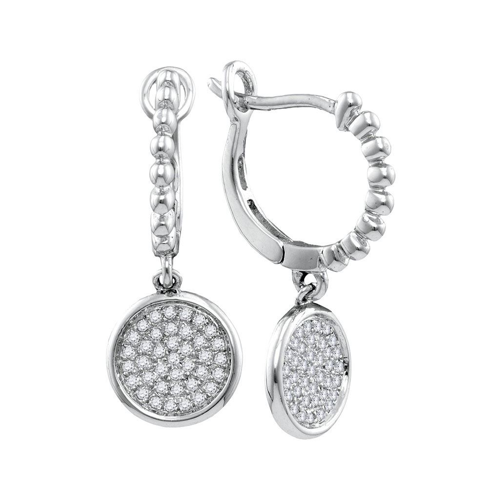REF-20R5X - 1/8 CTW Womens Round Diamond Circle Dangle Earrings 10kt White Gold - REF-20R5X