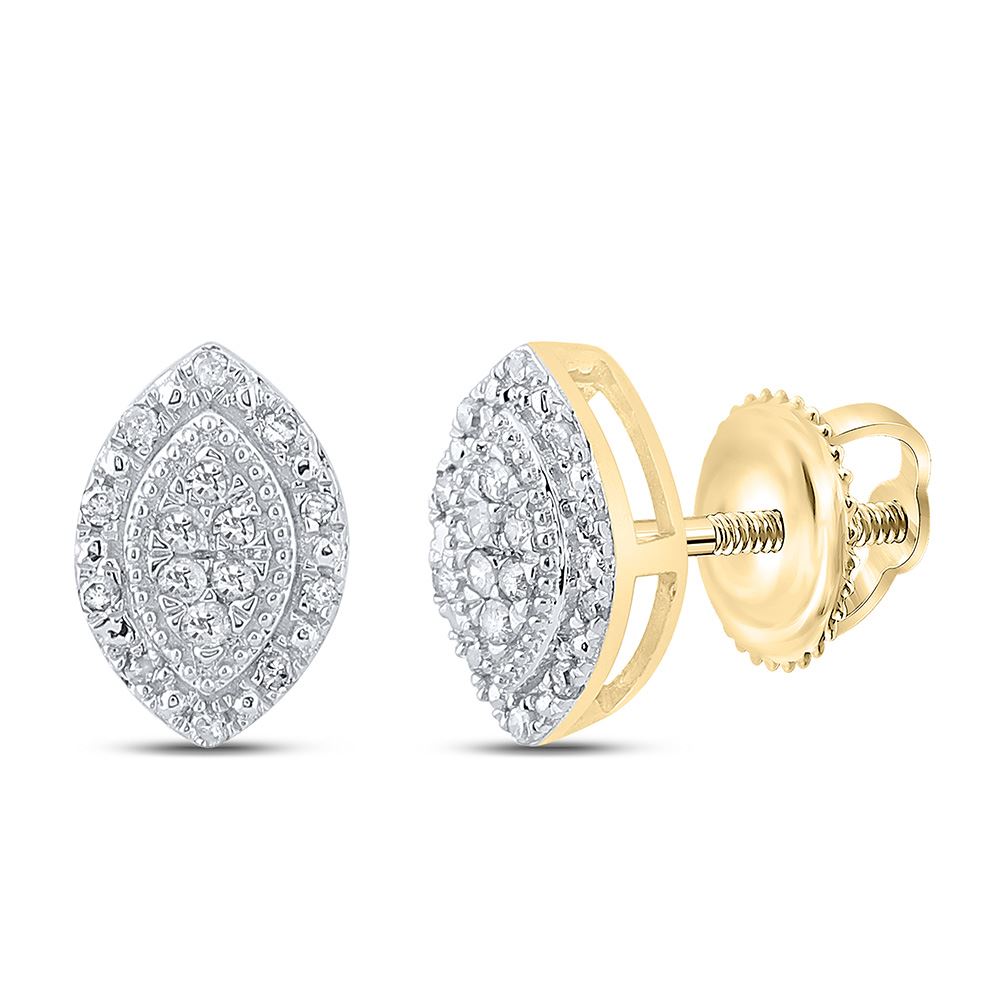 REF-15N2A - 1/8 CTW Womens Round Diamond Oval Cluster Earrings 10kt Yellow Gold - REF-15N2A