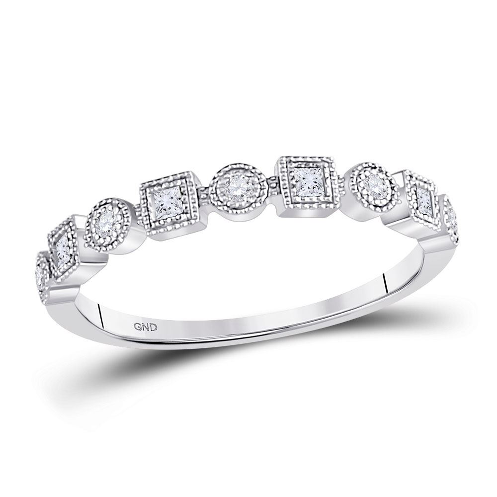 REF-17F6W - 1/8 CTW Womens Round Diamond Square Dot Stackable Band Ring 10kt White Gold - REF-17F6W